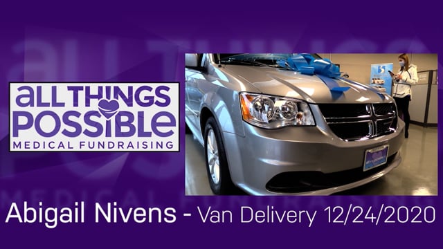 Avonlea’s mom is a freelance wedding photographer. Her dad is an Arborist. They currently drive a Toyota Prius. The family desperately needed a van with a ramp to safely transport Avonlea in her wheelchair along with her little sister Violet (who did not receive the genetic mutation), and all of Avonlea’s emergency breathing equipment.